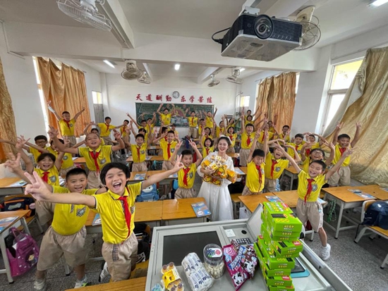 姚雅倩与所带班级学生合影。受访者供图